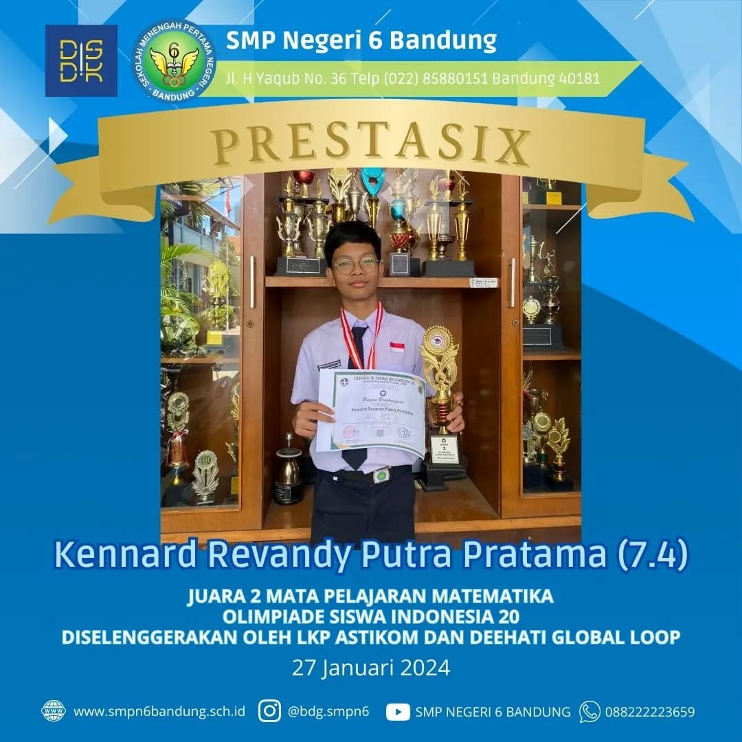 Selamat kepada Ananda Kennard Revandy Putra Pratama, kelas VII-4 atas raihan prestasinya.Semoga menjadi motivasi untuk